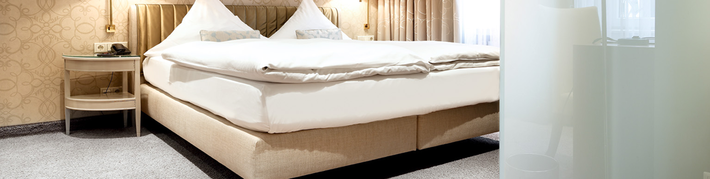 Textile Beläge schaffen Atmosphäre in Foyers, Zimmern und Restaurants. Individuell bedruckbar für markante Identität. Pflegeleicht und robust.